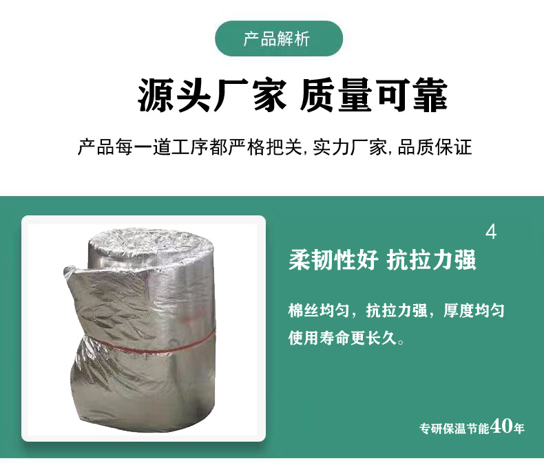耐高溫無機纖維卷毯耐溫高達1100℃,高溫下導熱系數(shù)極低具有優(yōu)秀的耐火性能和隔熱性能。封裝于表面的阻燃方格筋復合鋁箔提供額外的作業(yè)強度,防潮性能優(yōu)異。