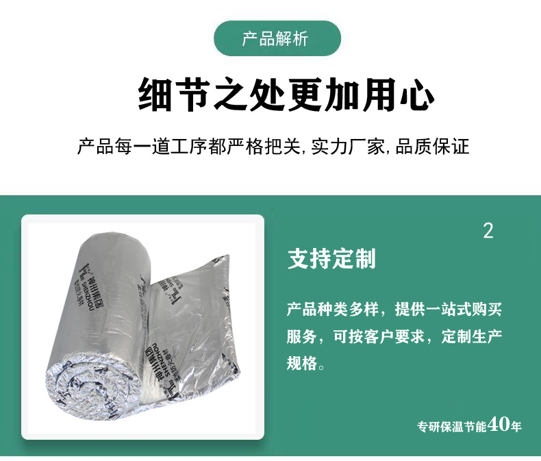 耐高溫?zé)o機纖維卷毯耐溫高達1100℃,高溫下導(dǎo)熱系數(shù)極低具有優(yōu)秀的耐火性能和隔熱性能。封裝于表面的阻燃方格筋復(fù)合鋁箔提供額外的作業(yè)強度,防潮性能優(yōu)異。